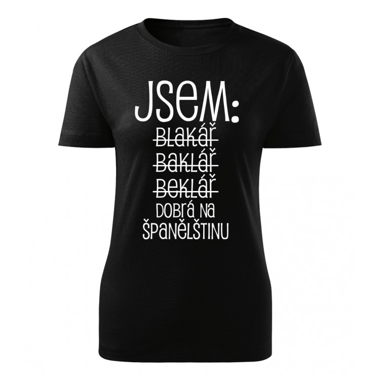 Dámské tričko s potiskem Jsem bakalář - španělština