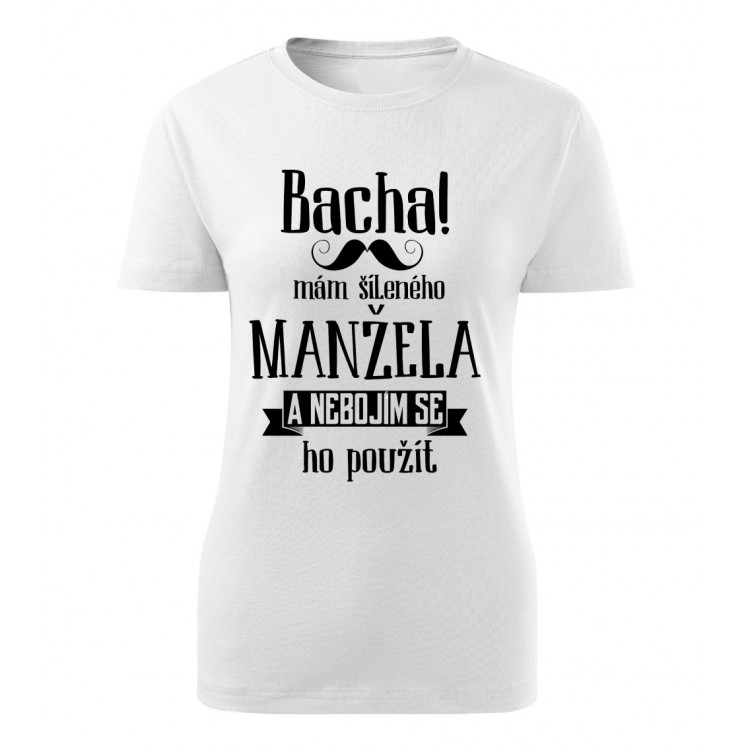 Dámské tričko s potiskem Bacha, mám šíleného manžela.