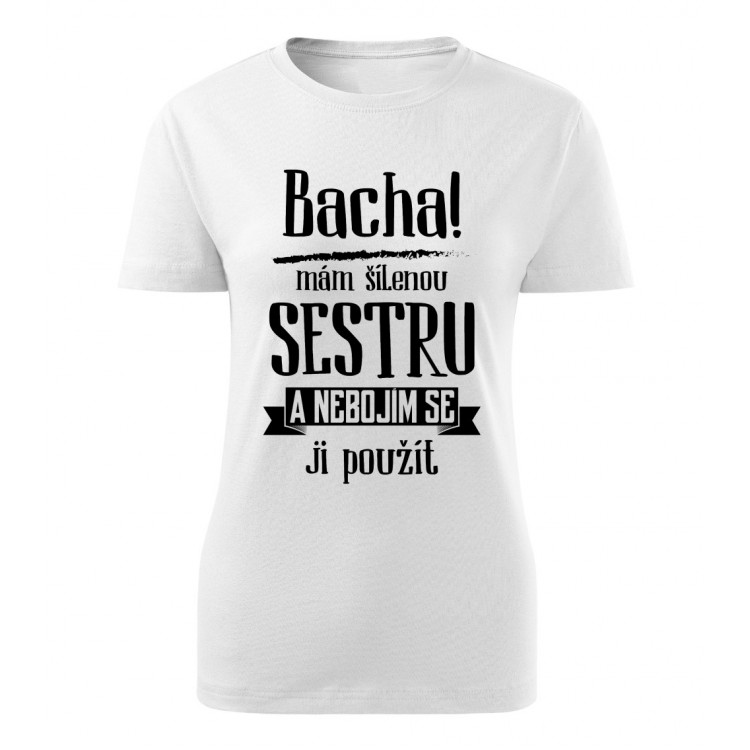 Dámské tričko s potiskem Bacha, mám šílenou sestru.