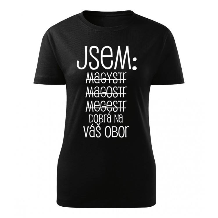 Dámské tričko s potiskem Jsem magistr - váš obor | Lemurak.cz