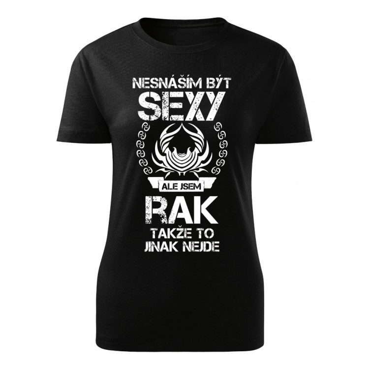 Dámské tričko s potiskem Nesnáším být sexy ale jsem RAK takže to jinak nejde.