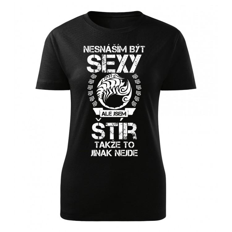 Dámské tričko s potiskem Nesnáším být sexy ale jsem ŠTÍR takže to jinak nejde.