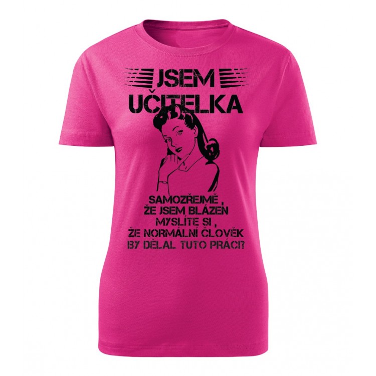 Dámské tričko s potiskem Jsem učitelka, samozřejmě, že jsem blázen. Myslíte si, že normální člověk by dělal tuto práci?