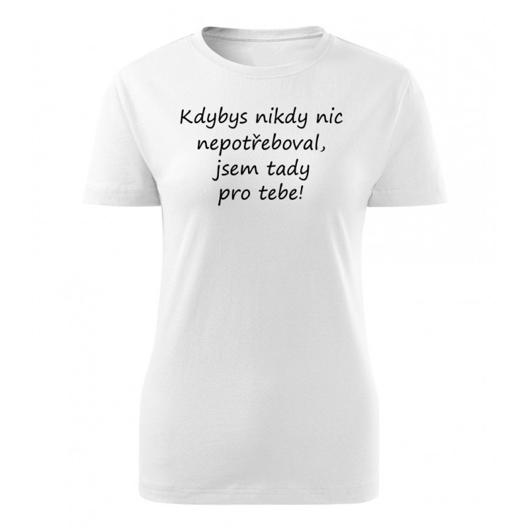 Dámské tričko s potiskem Kdybys nikdy nic nepotřeboval, jsem tady pro tebe!