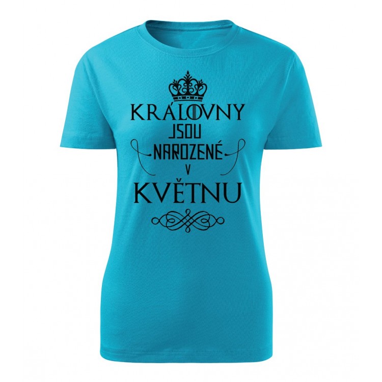 Dámské tričko s potiskem Královny jsou narozené v květnu.