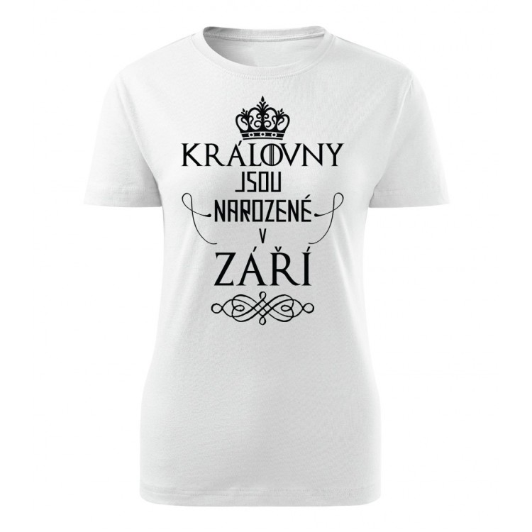 Dámské tričko s potiskem Královny jsou narozené v září.