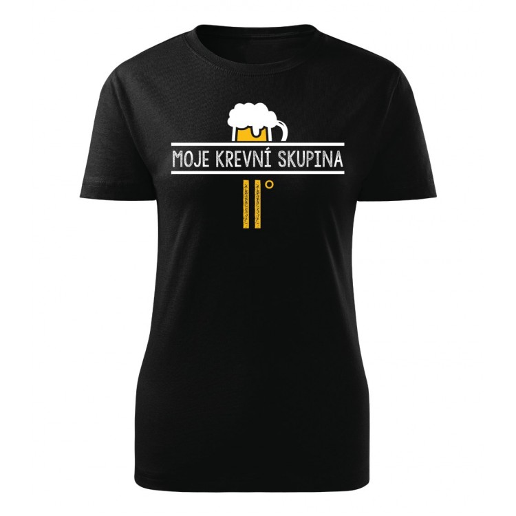 Dámské tričko s potiskem Moje krevní skupina 11°.