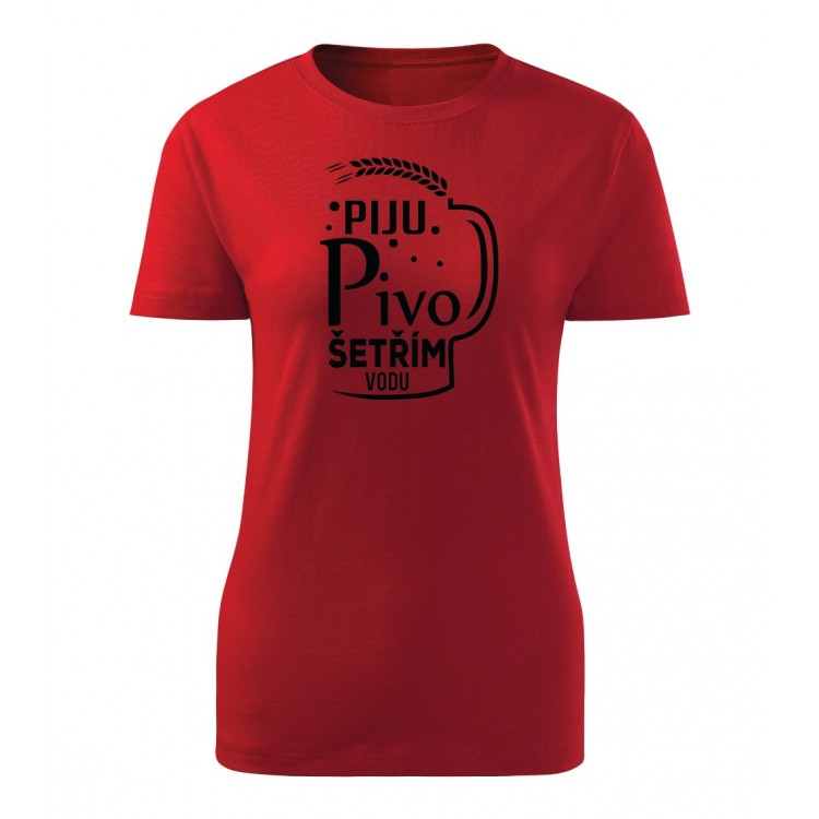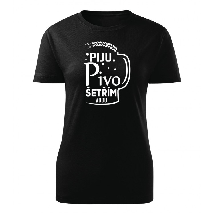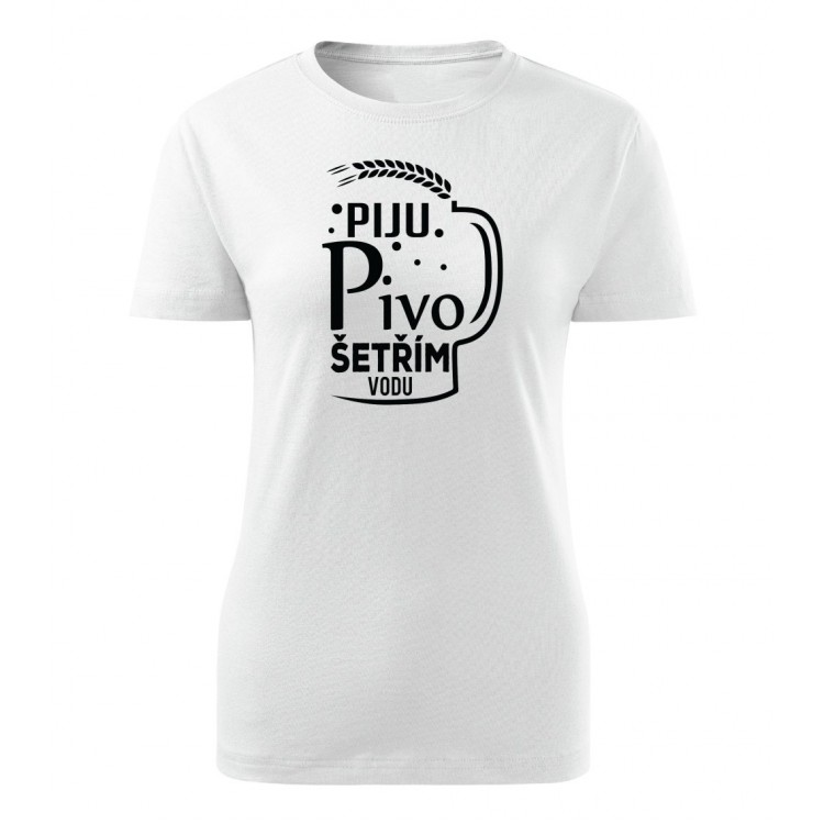 Dámské tričko s potiskem Piju pivo, šetřím vodu.