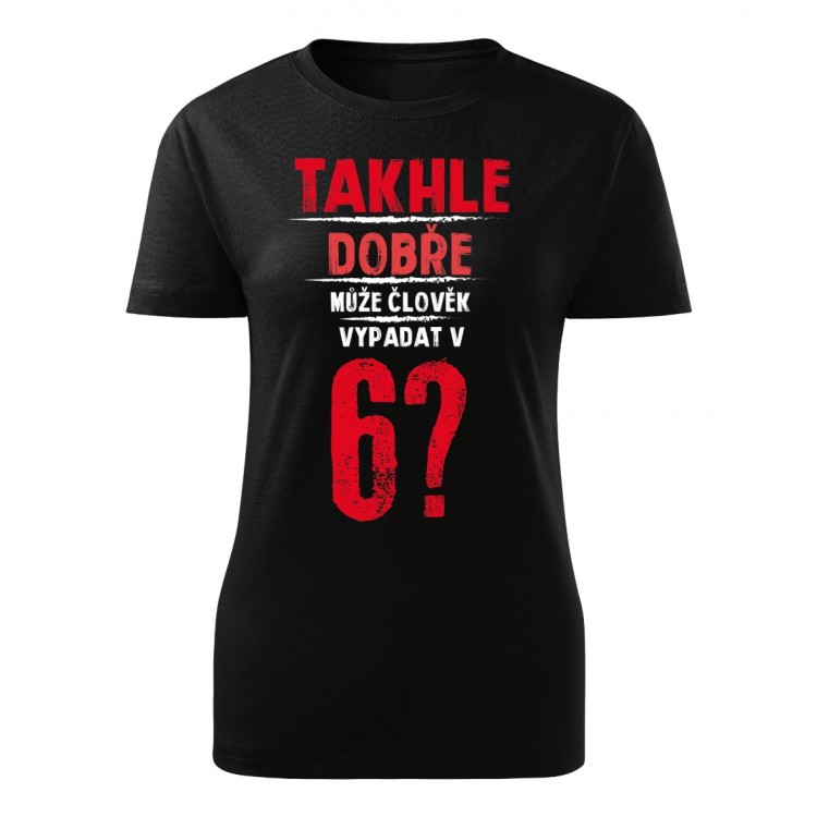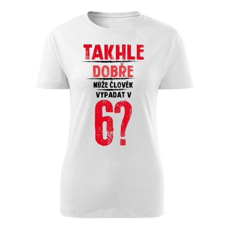 Dámské tričko s potiskem Takhle dobře může člověk vypadat v 6? - věk na přání | Lemurak.cz