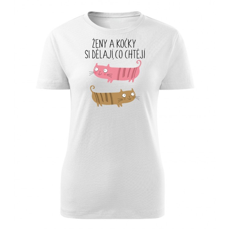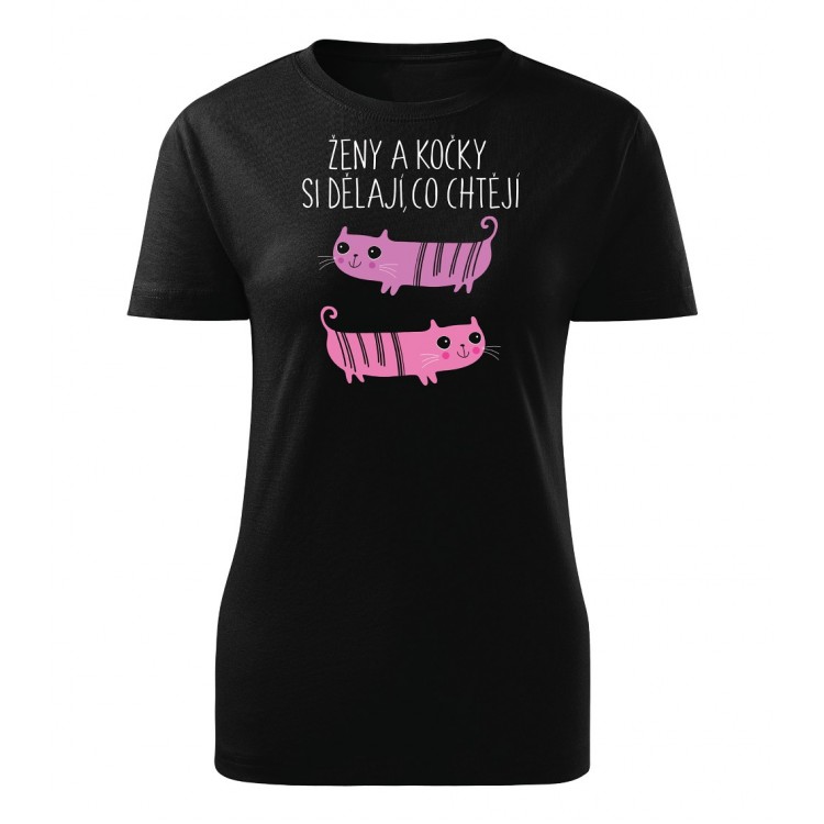 Dámské tričko s potiskem Ženy a kočky si dělají co chtějí. A máme k tomu i hrneček :)