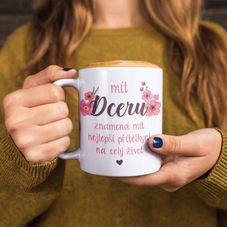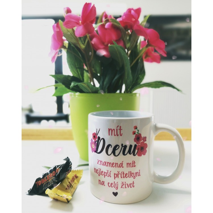 Hrneček s motivem Mít dceru znamená mít nejlepší přítelkyní na celý život.