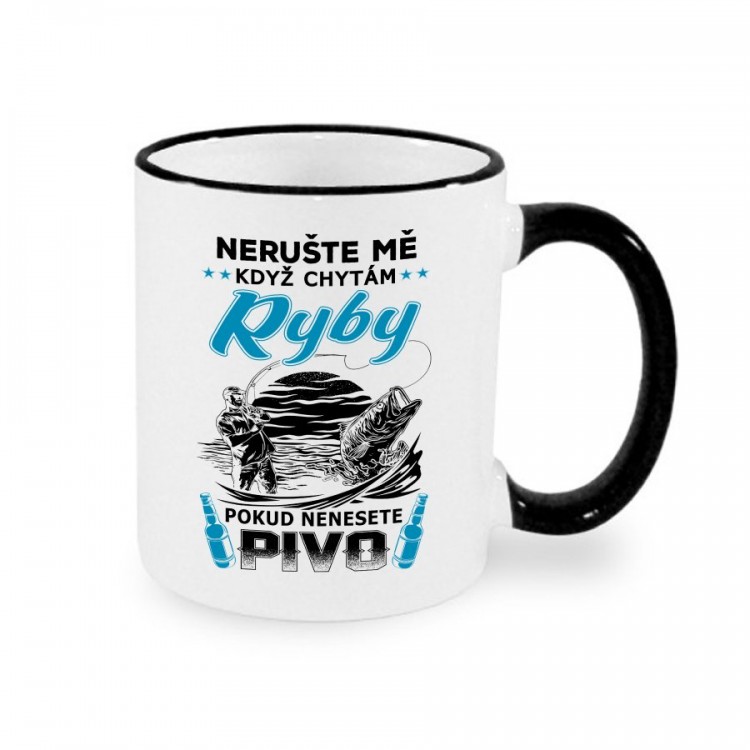 Hrnek nejen pro rybáře s motivem Nerušte mě když chytám ryby, pokud neneste pivo.