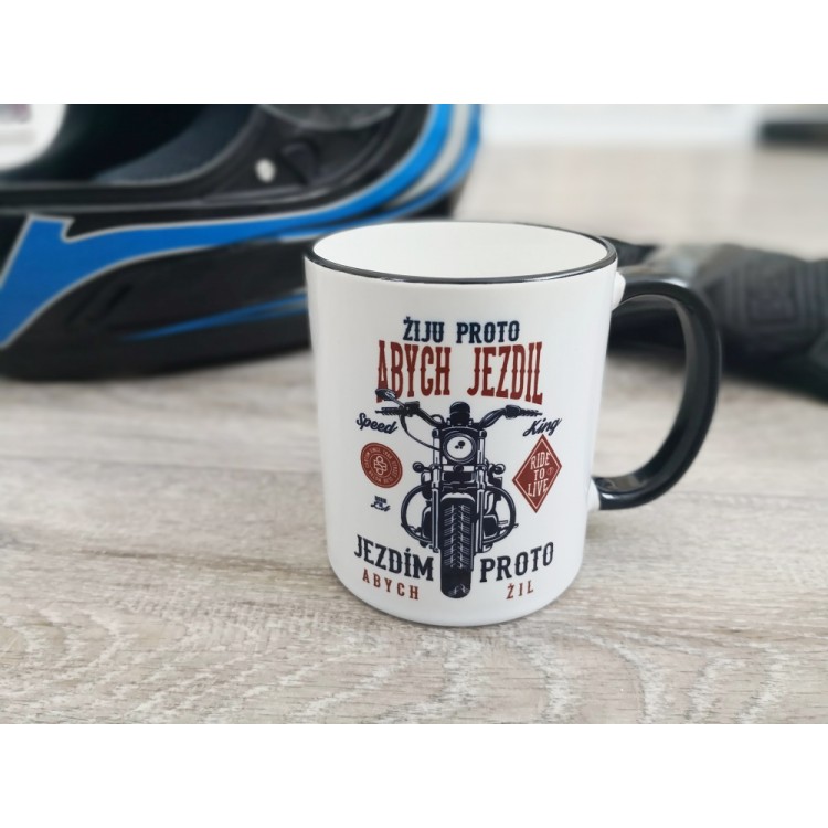 Hrnek pro motorkáře s motivem Žiju abych jezdil.