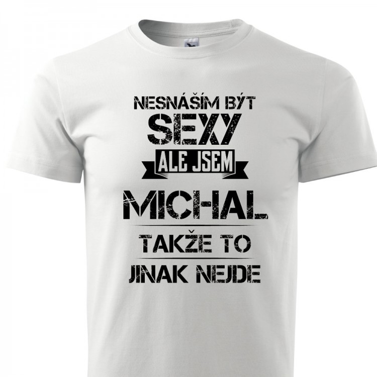 Pánské tričko s potiskem Nesnáším být sexy ale jsem Michal takže to jinak nejde.
