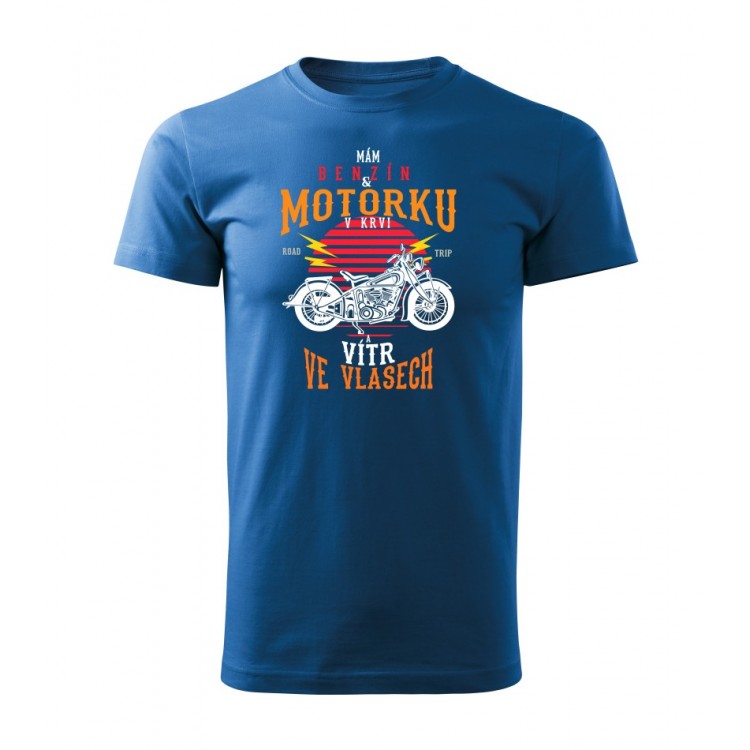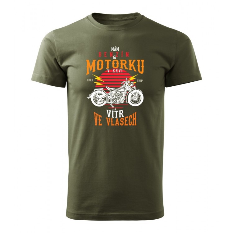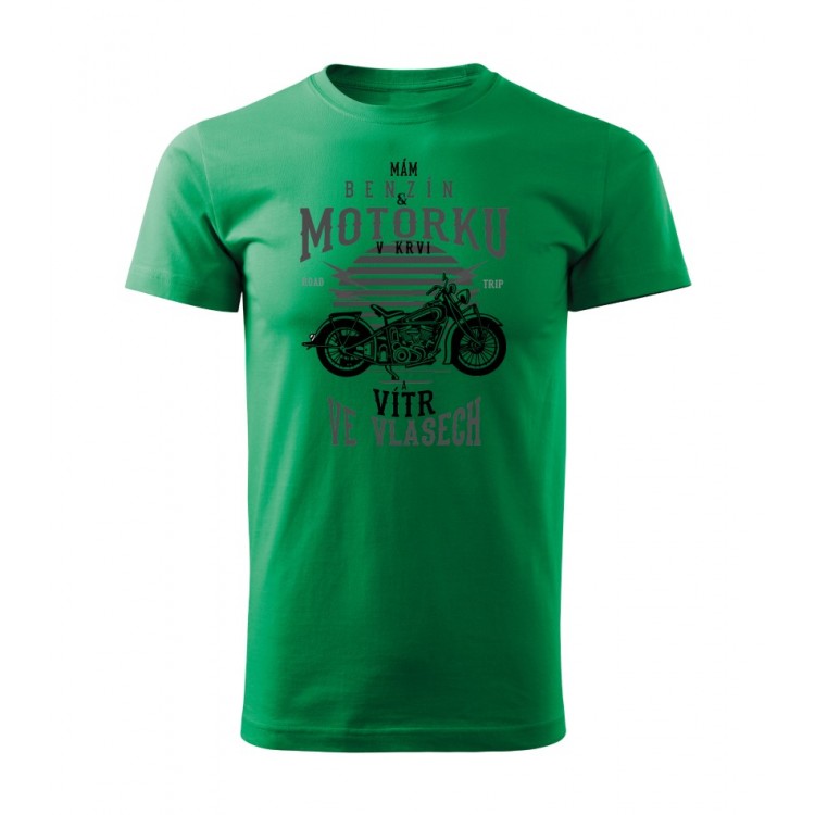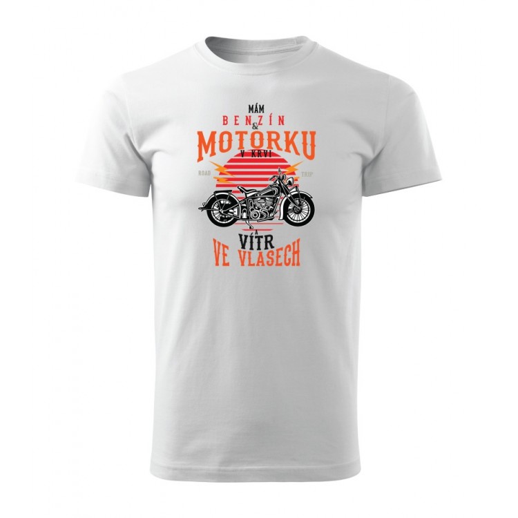 Pánské tričko pro motorkáře s potiskem Benzín v krvi, vítr ve vlasech.