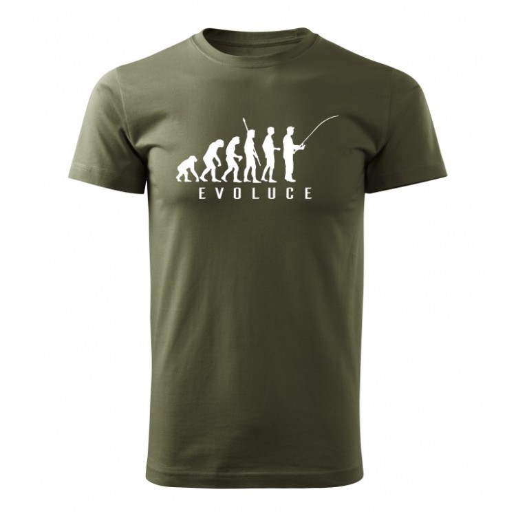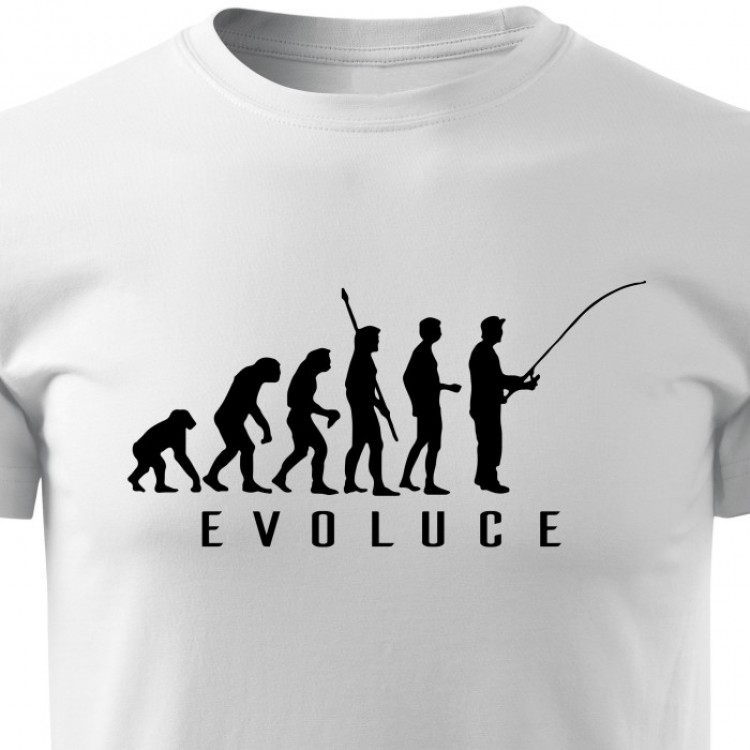 Tričko s vtipným potiskem zobrazuje evoluci po rybářsku. Kvalitní bavlněné triko se dobře nosí. Vybírat lze z různých barev i velikostí, díky tomu si tak každý může vytvořit tričko, po kterém touží. Tento jedinečný model skvěle podtrhne vaši osobnost. Triko se vyznačuje kvalitním materiálem, který mu zajišťuje pohodlí a dlouhou životnost. Je to skvělý tip na dárek, gadget či suvenýr k nejrůznějším příležitostem.