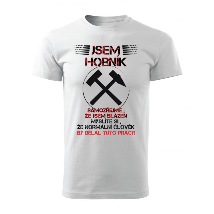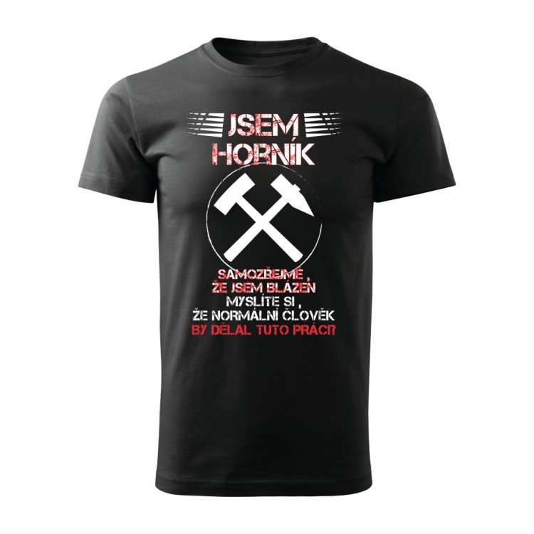 Tričko s potiskem Jsem horník, samozřejmě, že jsem blázen. Myslíte si, že normální člověk by dělal tuto práci?
