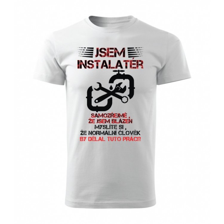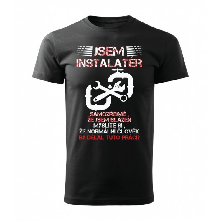Tričko s potiskem Jsem instalatér, samozřejmě, že jsem blázen. Myslíte si, že normální člověk by dělal tuto práci?