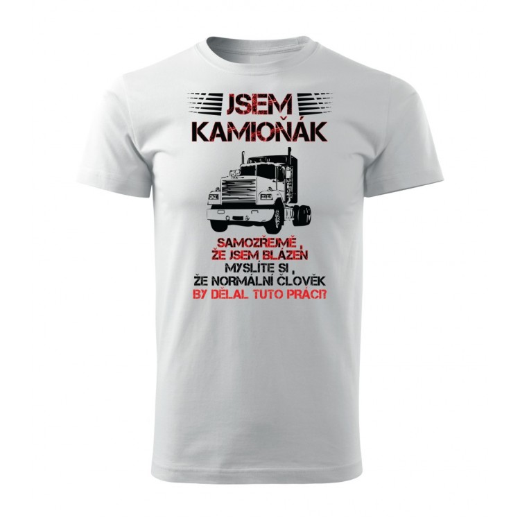 Tričko s potiskem Jsem kamioňák, samozřejmě, že jsem blázen. Myslíte si, že normální člověk by dělal tuto práci?