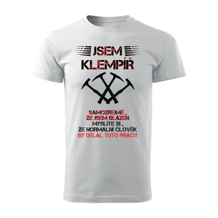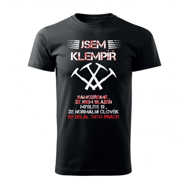 Tričko s potiskem Jsem klempíř, samozřejmě, že jsem blázen. Myslíte si, že normální člověk by dělal tuto práci?