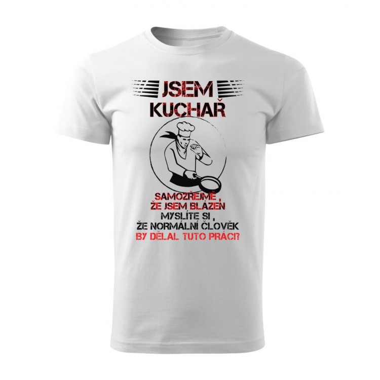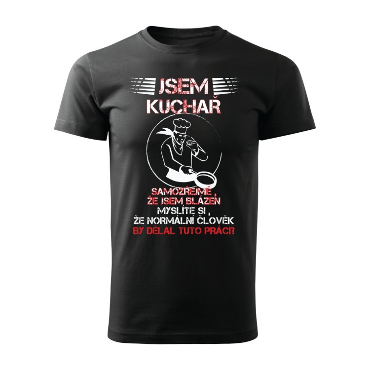 Tričko s potiskem Jsem kuchař, samozřejmě, že jsem blázen. Myslíte si, že normální člověk by dělal tuto práci?