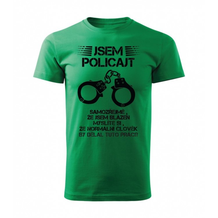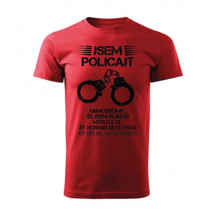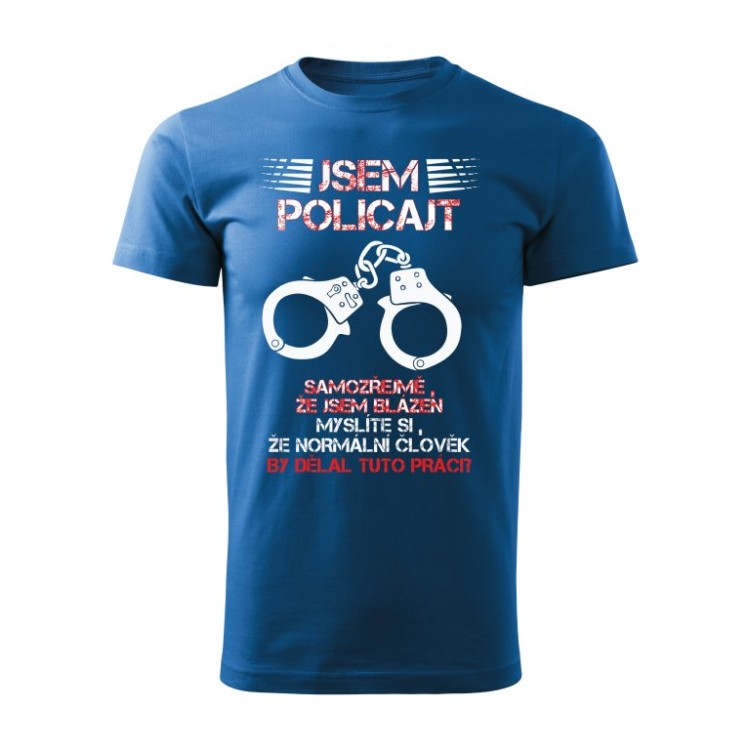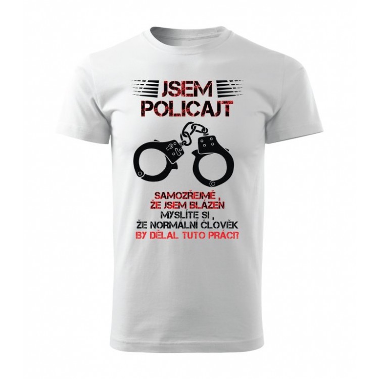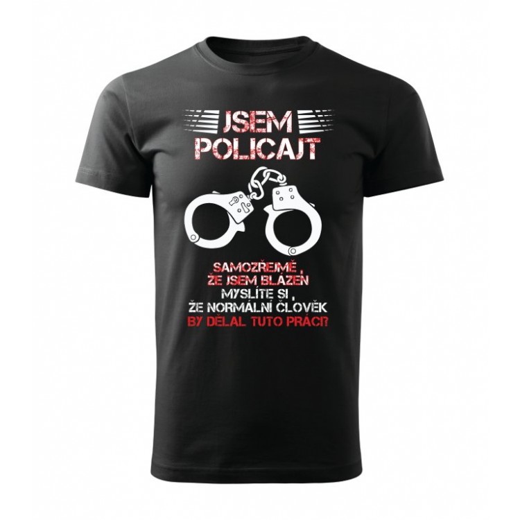 Tričko s potiskem Jsem policajt, samozřejmě, že jsem blázen. Myslíte si, že normální člověk by dělal tuto práci?