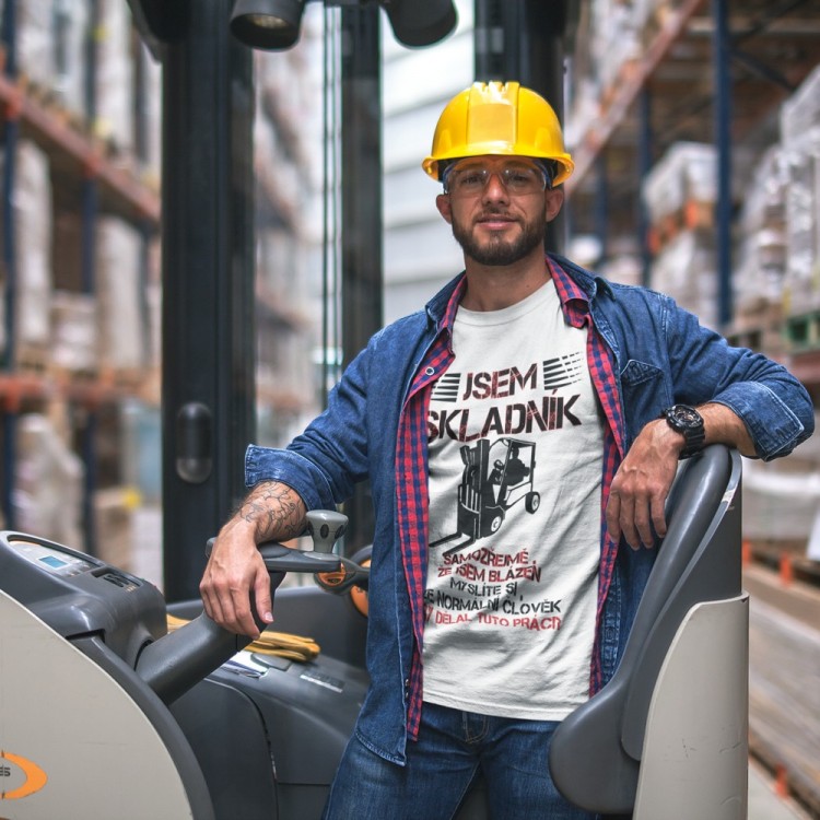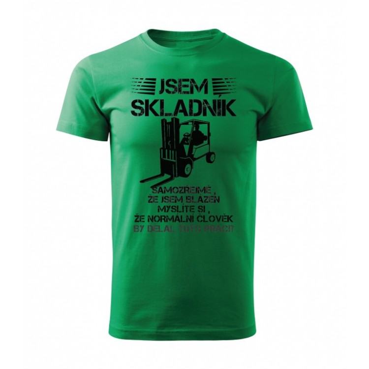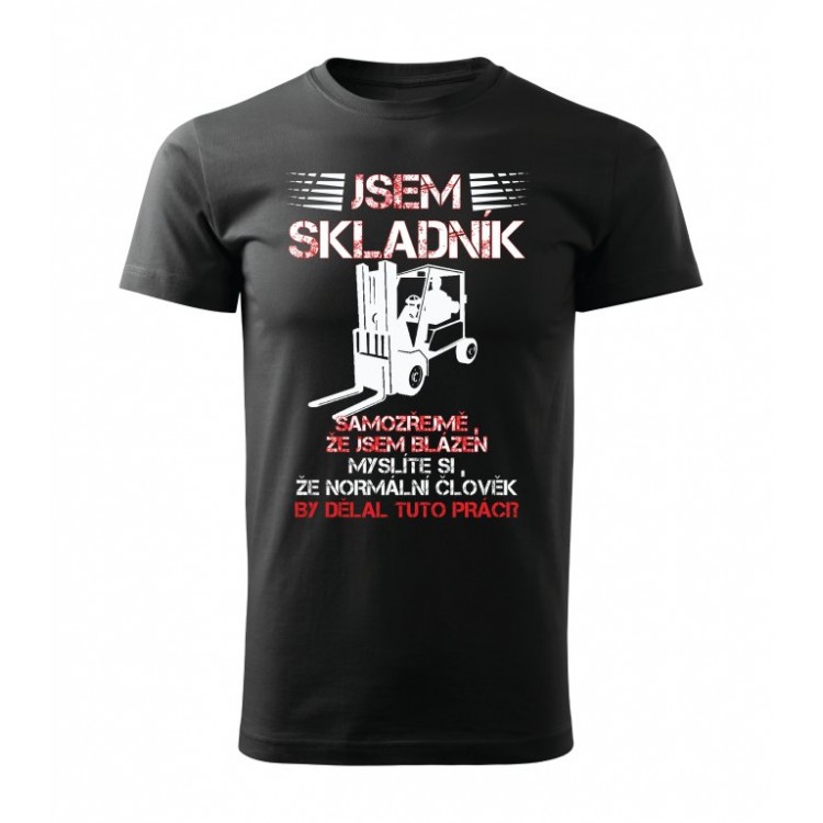 Tričko s potiskem Jsem skladník, samozřejmě, že jsem blázen. Myslíte si, že normální člověk by dělal tuto práci?
