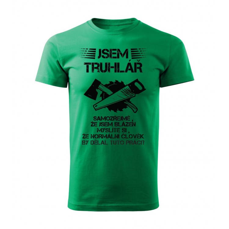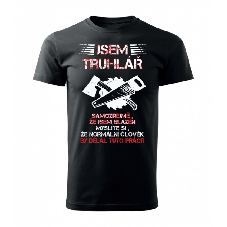 Tričko s potiskem Jsem truhlář, samozřejmě, že jsem blázen. Myslíte si, že normální člověk by dělal tuto práci?