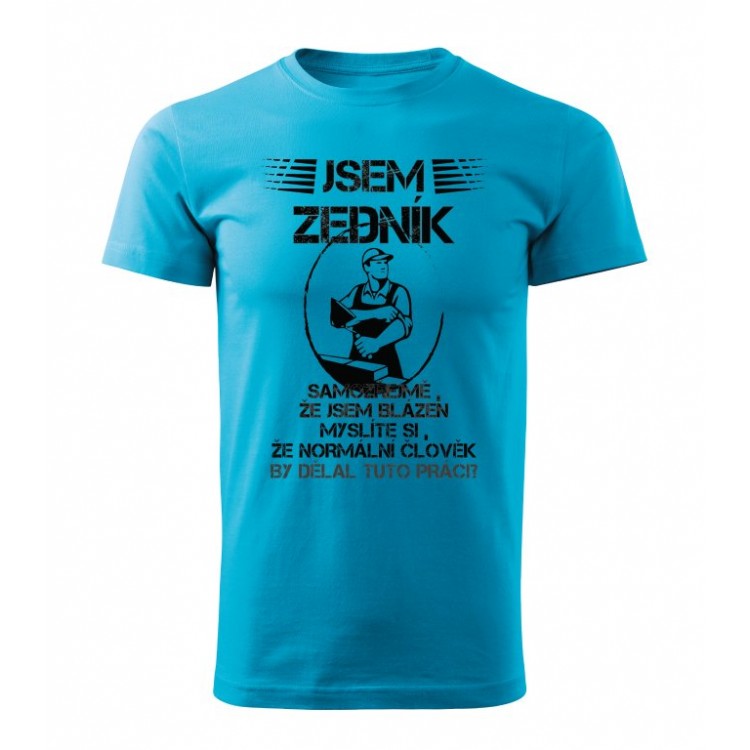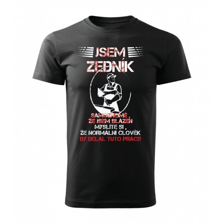 Tričko s potiskem Jsem zedník, samozřejmě, že jsem blázen. Myslíte si, že normální člověk by dělal tuto práci?