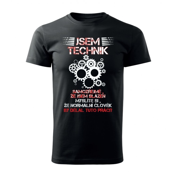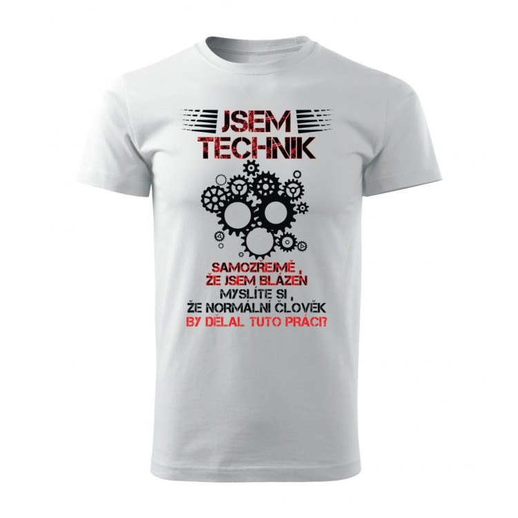 Tričko s potiskem Jsem technik, samozřejmě, že jsem blázen. Myslíte si, že normální člověk by dělal tuto práci?