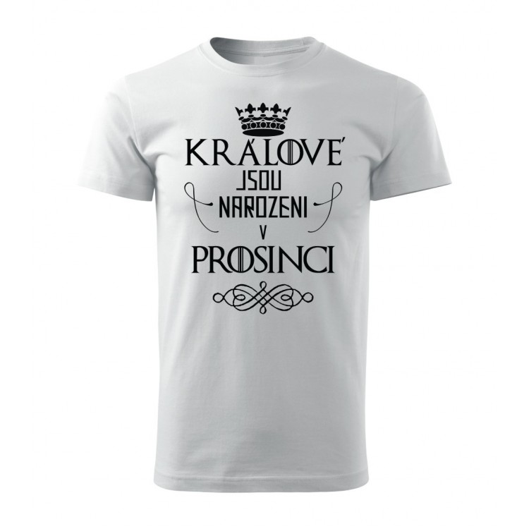 Pánské tričko s potiskem Králové jsou narozeni v prosinci.