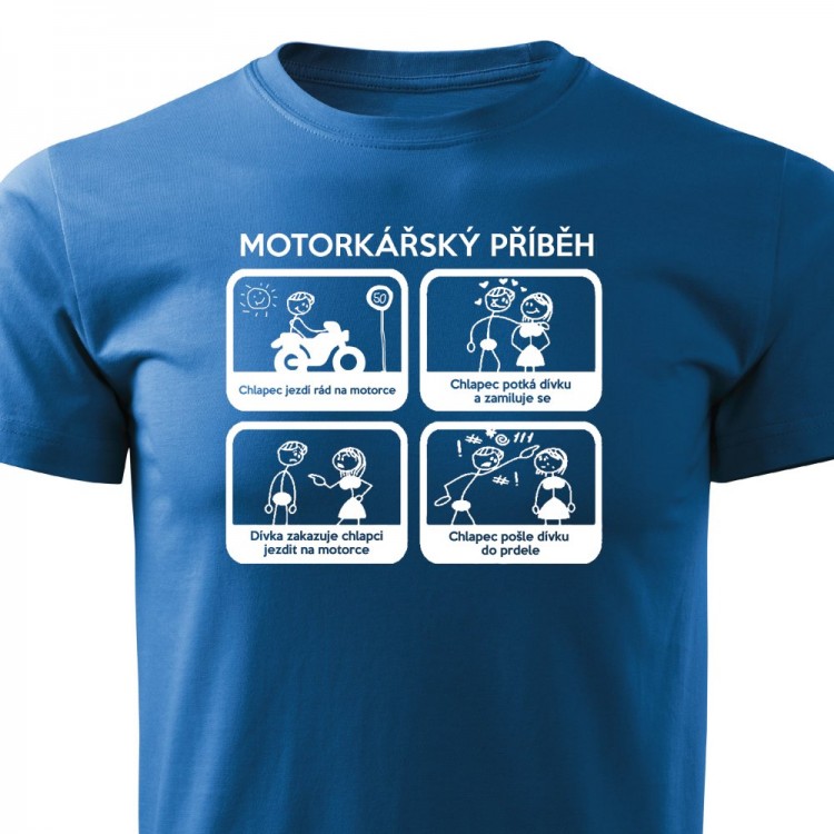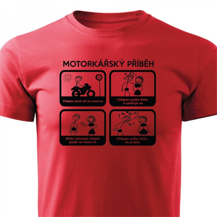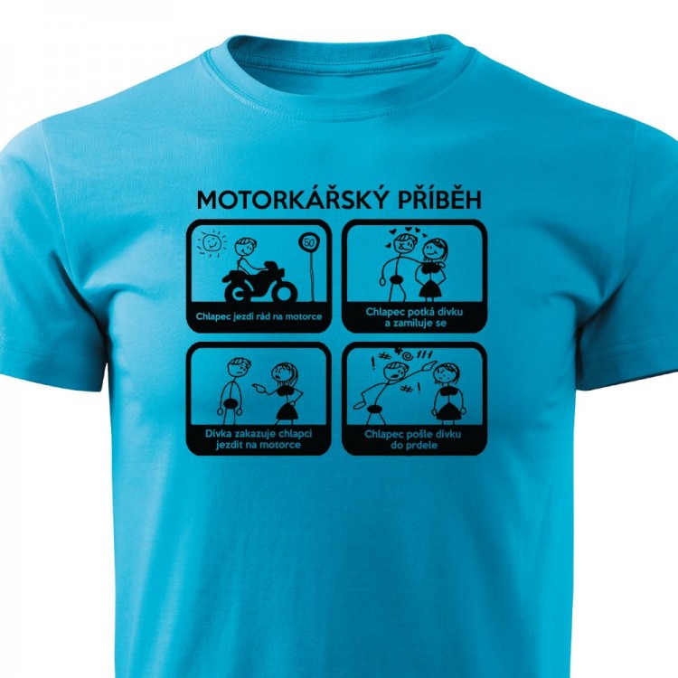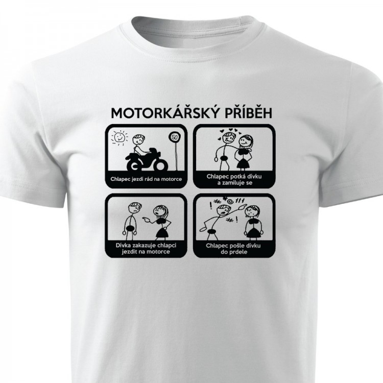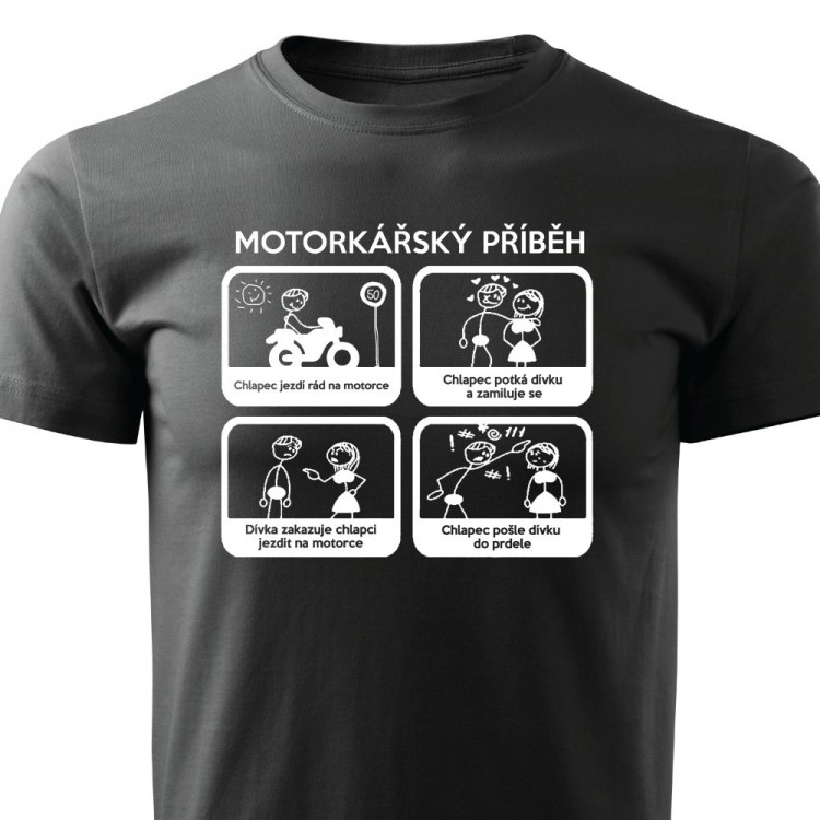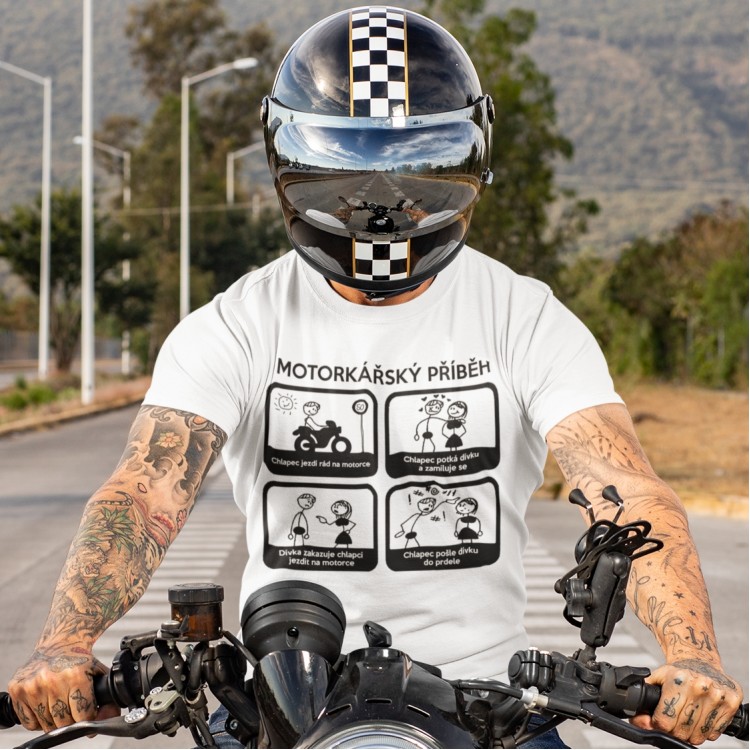 Pánské tričko pro motorkáře s potiskem Motorkářský příběh.