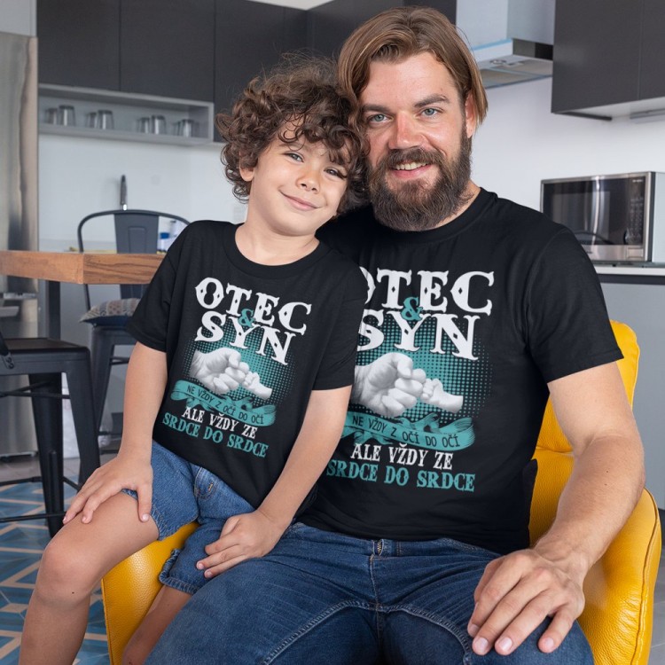 Tričko s motivem Otec a syn - Ne vždy z očí do očí, ale vždy ze srdce do srdce.