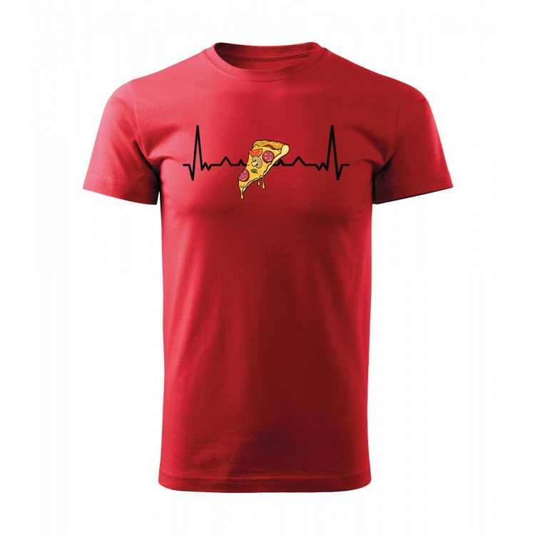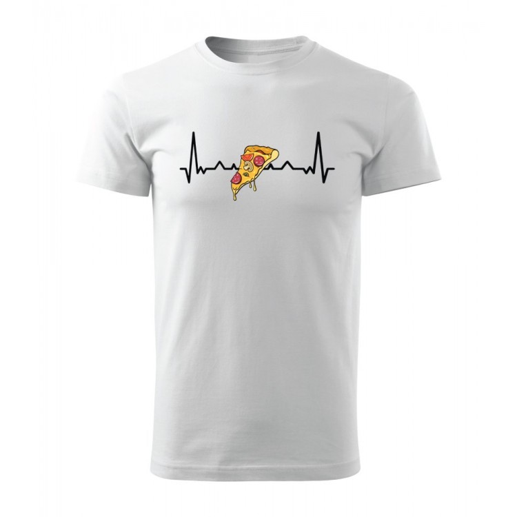 Pánské tričko s potiskem Pizza Hearbeat. Pánské tričko pro milovníky pizzy. Má vaše srdce tep jako pizza? Pak je toto triko ideální dárek.