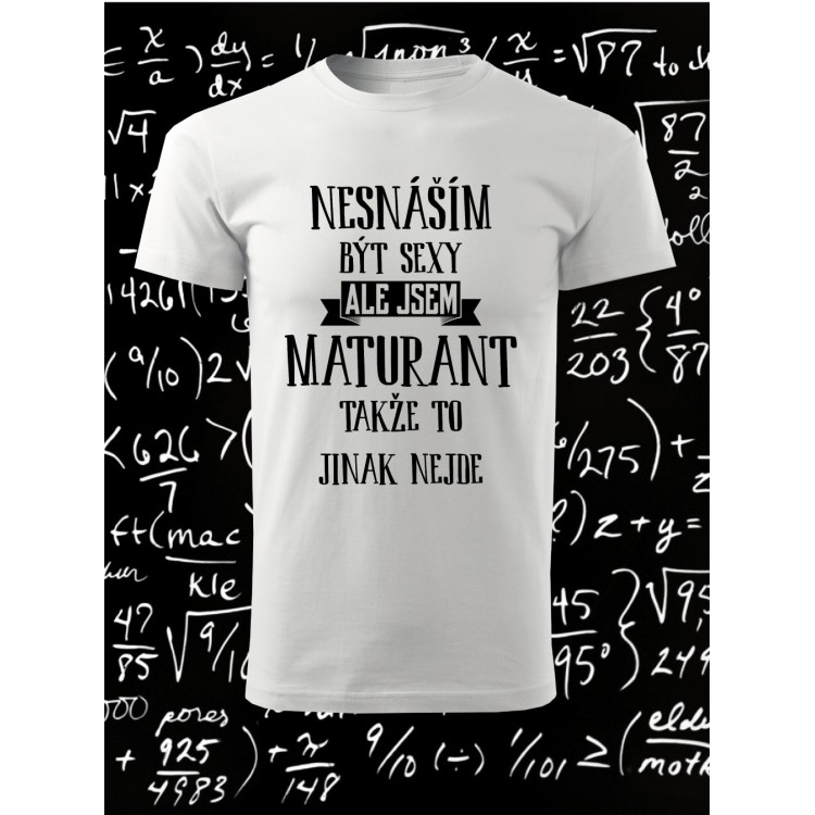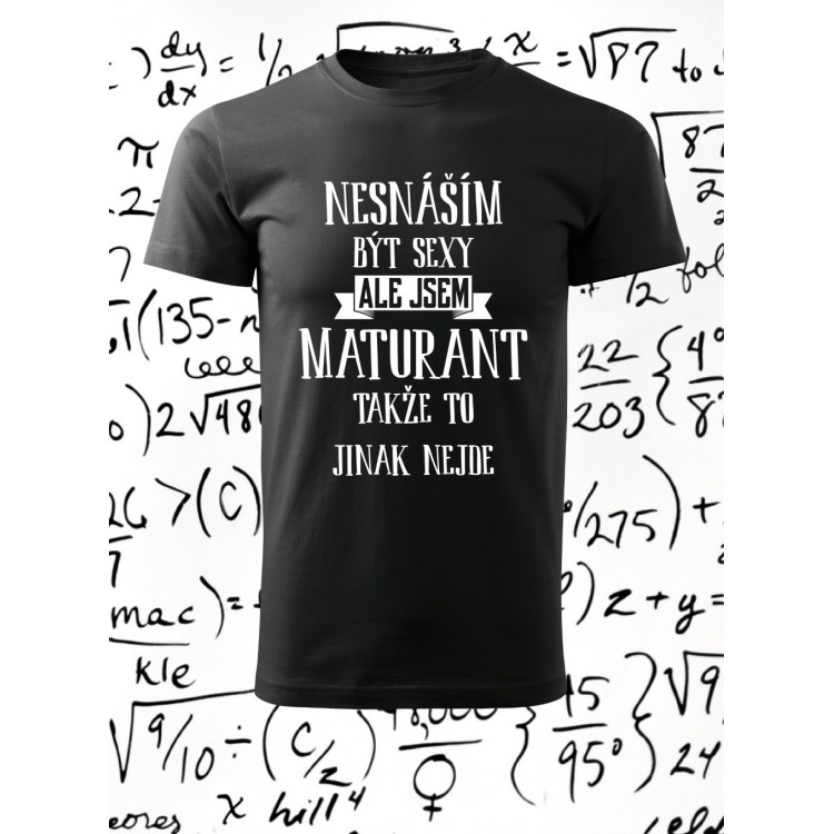 Pánské tričko pro všechny maturanty s potiskem Nesnáším být sexy ale jsem maturant takže to jinak nejde.
