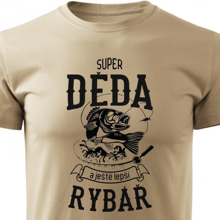 Tričko s potiskem Super děda a ještě lepší rybář.