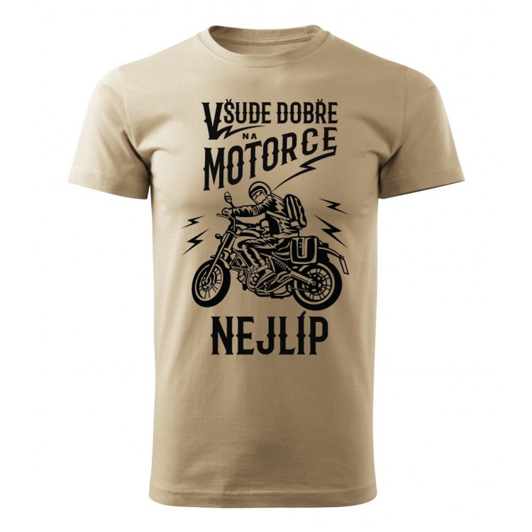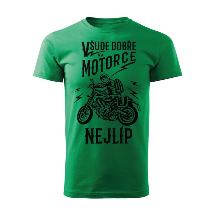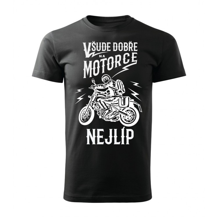 Pánské tričko pro motorkáře s potiskem Všude dobře, na motorce nejlíp.
