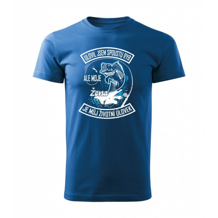 Životní úlovek je vaše žena? Dejte jí to i svému okolí tímto tričkem jasně najevo. Skvělý tip na dárek pro ženatého rybáře. Obdarujte tímto originálním tričkem každého muže rybáře. Kvalitní bavlněné triko s originálním potiskem zakoupíte jen u nás. Potisk odolá žehlení i praní. Tričko má jednoduchý střih, netlačí, precizně provedené švy se nerozpářou po prvním obléknutí. Tento model pořídíte v různých barvách a rozměrech.